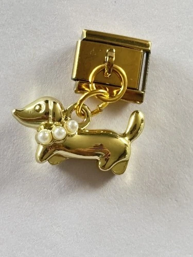 3d Puppy Dog Dachsund Dangling Drop Golden Charm Link For A Nomination Bracelet