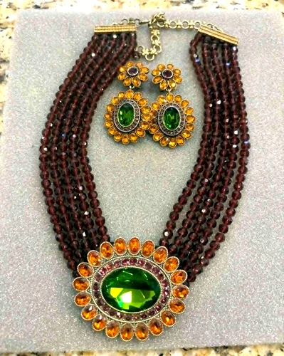 HEIDI DAUS SET: Crystal statement necklace & matching earrings. Preowned.