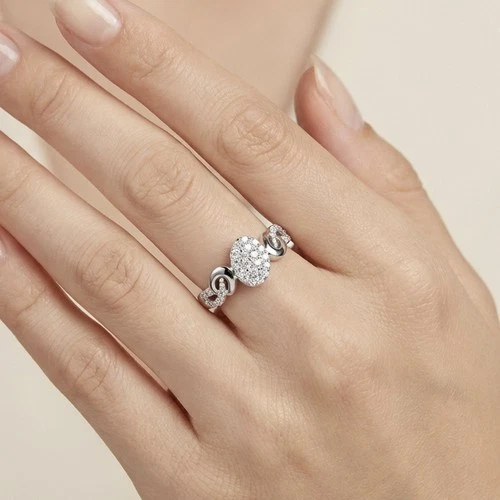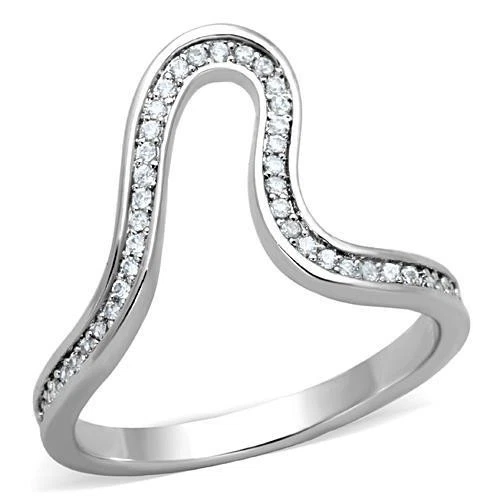 Silver band ring pave swirl cubic zirconia steel no tarnish