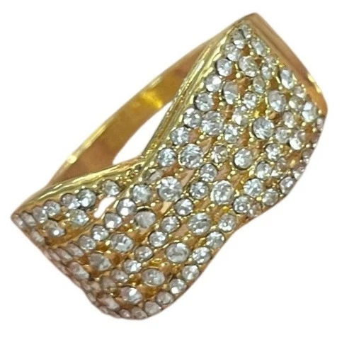 Gold Tone Crystal Pave Wavy Band Ring Womens Statement Sparkle Thumb Jewelry 11