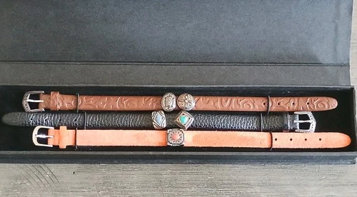 Prerogatives Southwestern Sterling Silver Turquoise Coral Charm Leather Bracelet