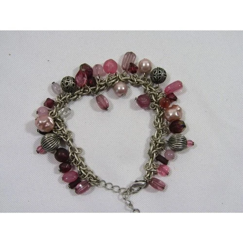 Silver Tone Bead Charm Bracelet Boho Cottagecore Festive 6 3/4" Whimsical Y2K