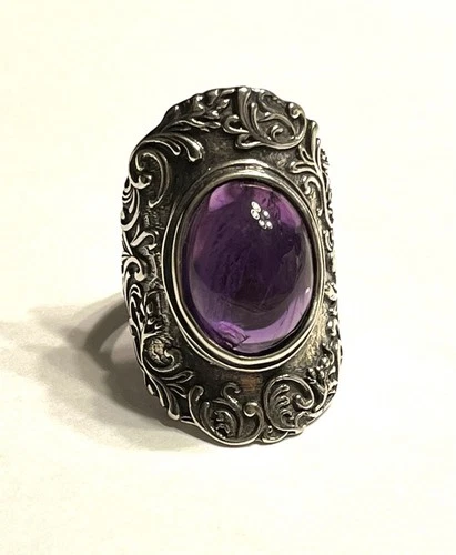 NWOT OR PAZ STERLING SILVER 925 AMETHYST ELONGATED DESIGN RING SZ 7 ISRAEL PZ