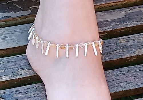 handmade citrine and biwa pearls anklet - tribal, faery, fairy, fae