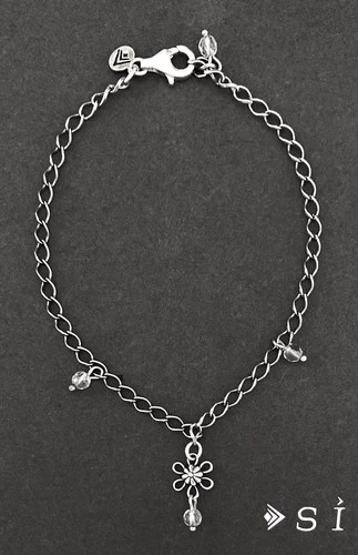 SILPADA Sterling Silver Flower Crystal ANKLE Bracelet~#A1554~Size 9~RETIRED!