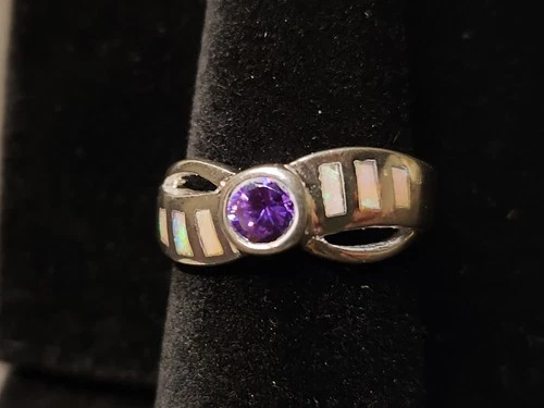Amethyst and Blue Fire Opal Inlay Genuine 925 Sterling Silver Marked Mop