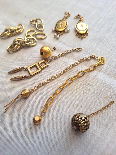 VTG Jewelry Findings CHAINS, DANGLES, DROPS Gold Tone 9 Pieces