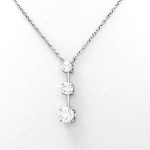 Solid 14k White Gold 3 Stone Diamonique DQ Pendant Necklace Prong Setting New
