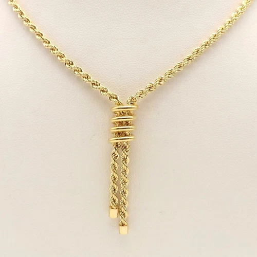 Solid 14k Gold Rope Link Lariat Setting Chain Necklace 20in + 1.5in Dangle