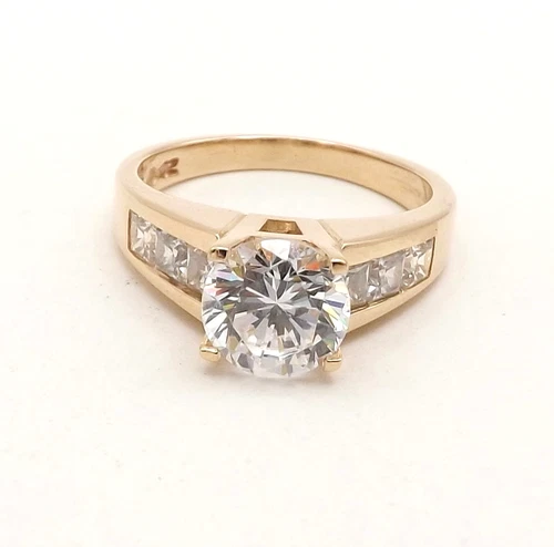 Solid 14k Gold Round Cubic Zirconia cz Engagement Ring Channel Setting Princess