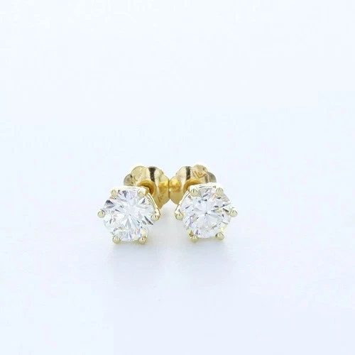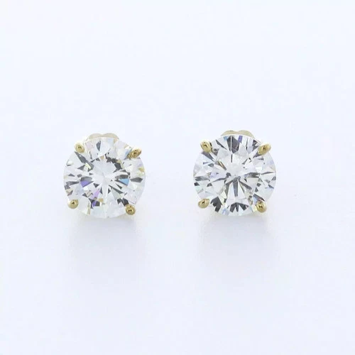 Stud Earrings Classic Solid 14K Yellow Gold 2.03 CT Round Natural Diamond H SI1