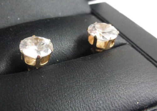 EARRINGS 9CT YELLOW GOLD LOVELY CLEAR GEMSTONE( 9CT STAMPED ON THE SML BACKS.