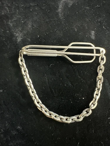 Vintage 1950s Silver-Tone Tie Bar Clip w/ Chain - MCM - Men's Formalwear