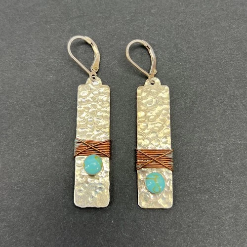 Turquoise Glass Copper Wrap Earrings Vintage Sterling Silver 925 Mexico