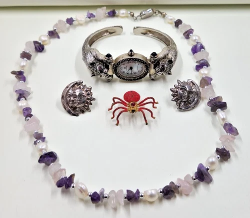 Vintage Jewelry Lot Sterling Celestial Earrings Gem Pearl Necklace Watch Pin