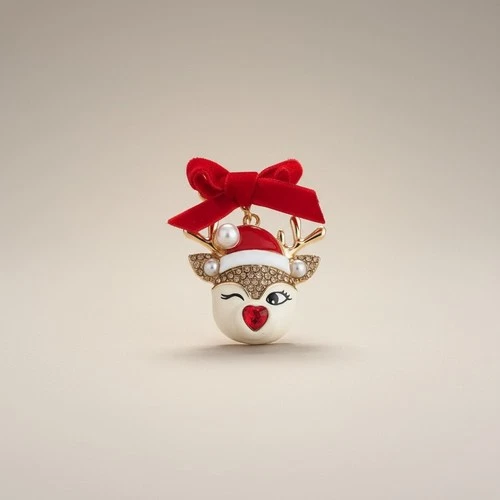 Betsey Johnson Large Reindeer Bow Brooch Pin Rhinestone Christmas NWT