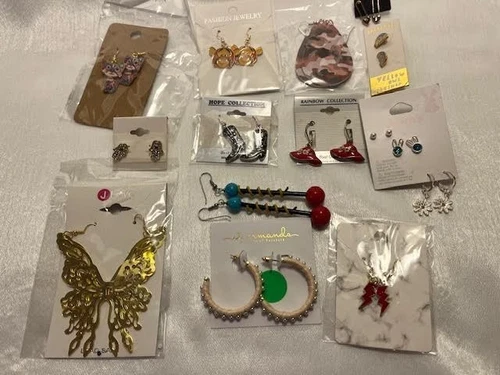 Lot #13: 14 PAIRS OF UNIQUE EARRINGS: LOTS OF VARIETY TO ADD TO YOUR COLLECTION
