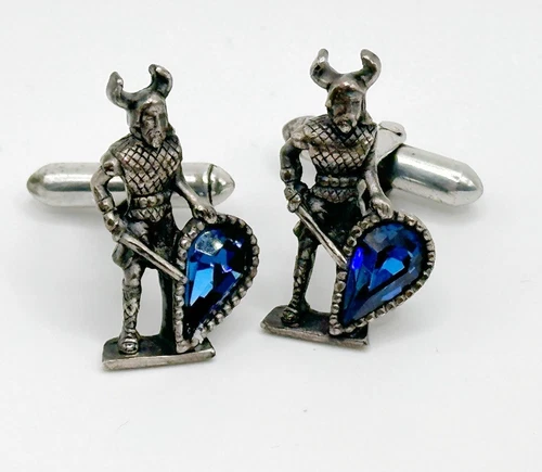 Vintage Signed Swank Viking Warrior Figural Sword Gemstone Shield Cufflinks RARE