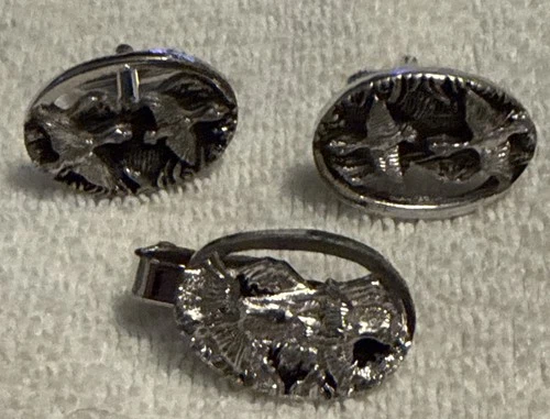 Vintage Flying Ducks Cufflinks & Matching Tie Bar in Silver Tone Finish