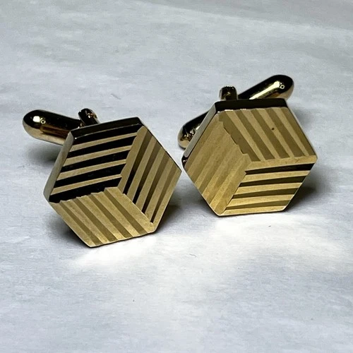 Vintage Art Deco Gold Tone Hexagon Geometric Cufflinks Cuff Links