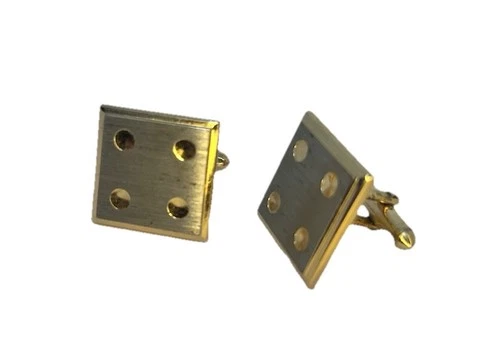 Vtg. Cufflinks Gold Silver Tone Dice Four Dots Brushed Stainless Brown Case