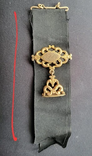 Antique Edwardian Watch Fob Black Ribbon Mourning Seal 1907 A.H. - Missing Chain