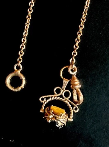 Vintage 9ct Gold LOCKET 7.4g FOB Carnelian Pendant FM Gold Fill Watch 15” Chain