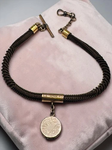 Antique Victorian Mourning Braided Hair Watch Chain & Locket Fob w/photo NICE