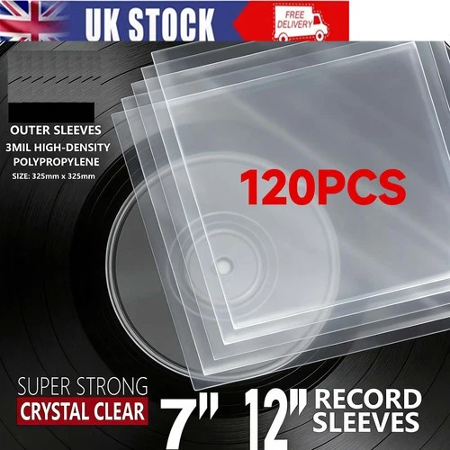 120Pcs Premium 7/12" Clear Plastic Vinyl Record Outer Sleeves Slimline LP Covers