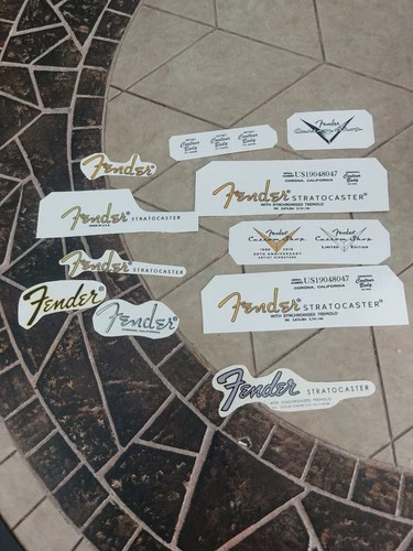 Various Stratocaster water slide logos