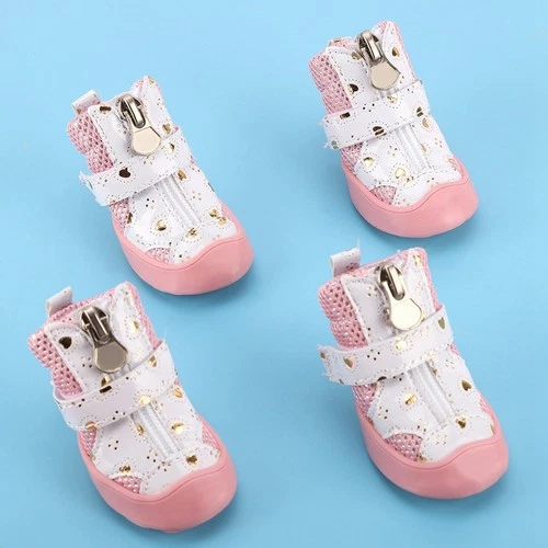 4Pcs Lot Pet Dog Shoes Puppy Non Slip Breathable Mesh Outdoor Walking Boots(Pink