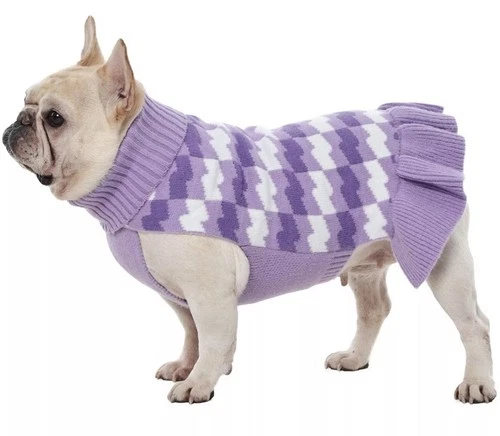 OUOBOB Female Knitted DOG JUMPER DRESS with FRILL XXXXL Purple Check NEW