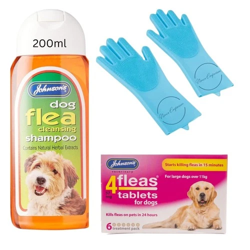 Flea Treatment kit. Johnsons Dog Flea Shampoo & Flea Tablets and wash mitt