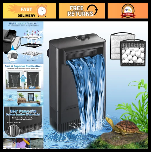 Adjustable Power Aquarium Filter 20-75 Gal, 290GPH, 3-Stage Bio-Filtration for F