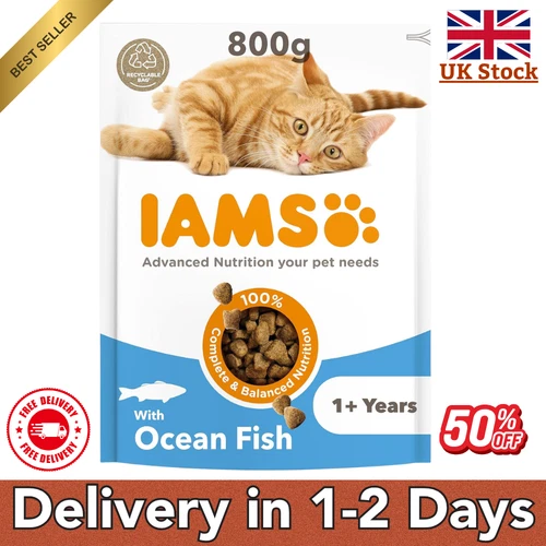 IAMS Adult Complete Dry Cat Food Ocean Fish 800g Supports Strong Immune System