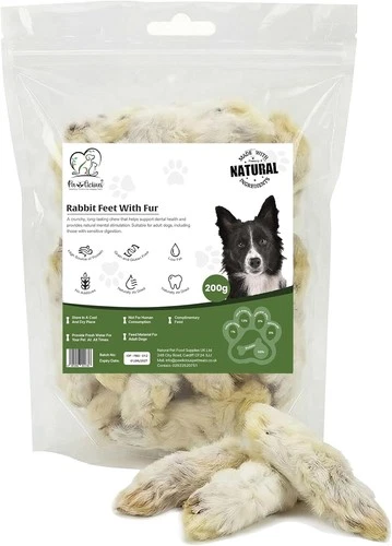 PAWLICIOUS 200g Rabbit Feet with Fur for Dog, 100% Natural Air-Dried Treat Chew