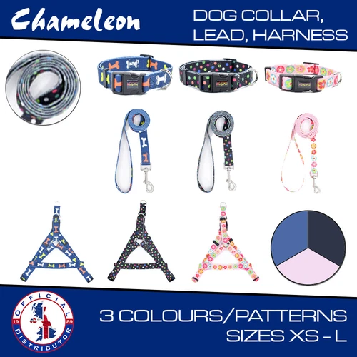 Dog Harness, Collar, Lead Adjustable -Patterned Pet Cat 3 Designs