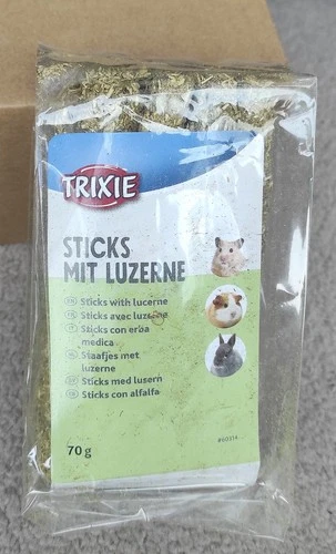 Box treats snacks sticks with lucerne rabbit rodents guinea pig support teeth