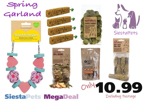 Rosewood Naturals Rabbit Guinea Pig Hearts & Flowers Garland +Treats Bundle NQP