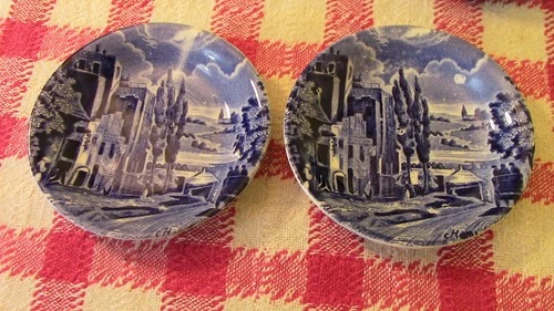 Rare W.H. Grindley "Scenes after Constable" Transferware 3 1/4" pin plates x 2