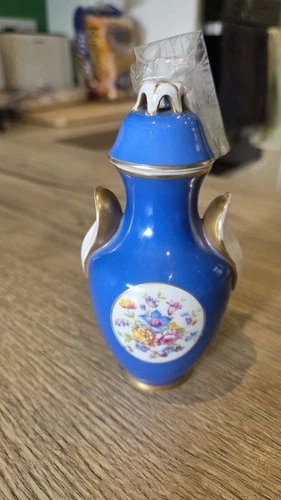 Vintage S.P. Coimbra Portugal Porcelain Mini Vase W/ Stopper Floral Design