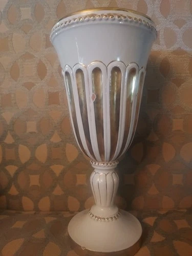 UGO ZACCAGNINI ITALIAN Pottery Ceramic Vase White w/Gold Stripes/Chipped see Pic