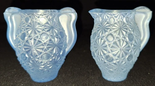 SET OF 2 VTG LE SMITH DAISY BUTTON BLUE FROST TOOTHPICK HOLDER URN & PITCHER JUG