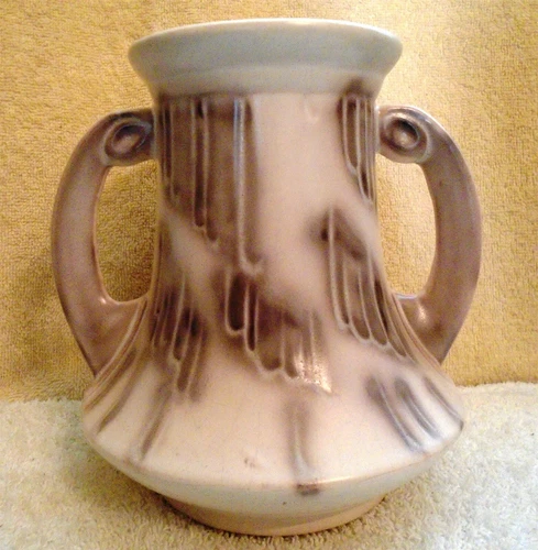 Vintage Ceramic Rumrill MCM Brown Beige Cream 2 Handle Vase Urn 7 Inches Tall
