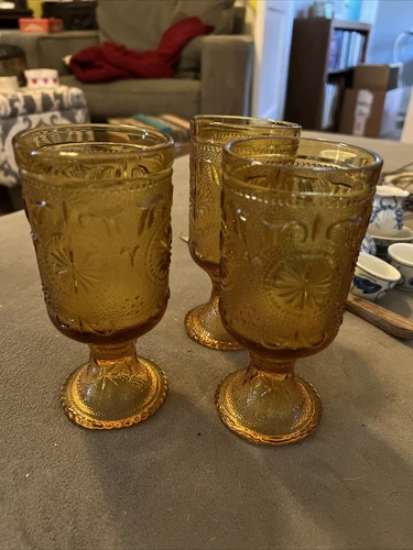 Brockway American Concord Vintage Amber footed goblets, set of 3