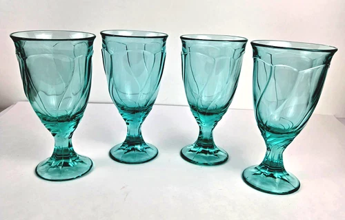 Vintage Noritake Sweet Swirl Aqua (or Light Green) Goblets 7 3/8" Set of 4