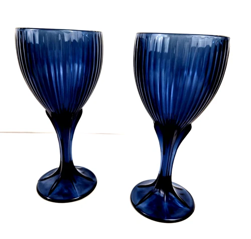 Vintage Fostoria Monet Dark Blue Water Goblet Elegant Stemware 8 oz Set of 2