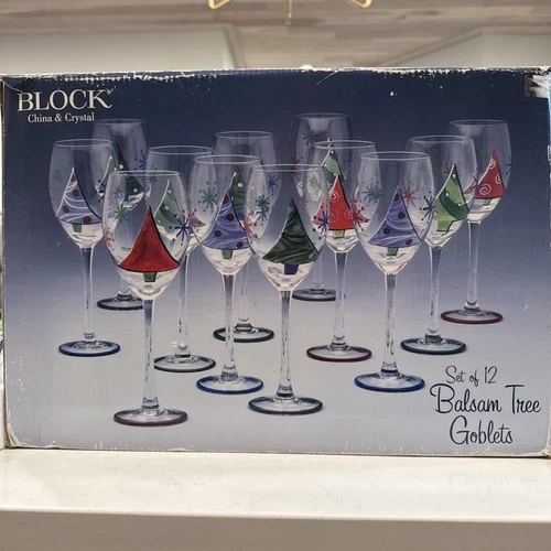 Block Crystal Set 12 Balsam Tree Goblets Wine Glasses Xmas Christmas Holiday