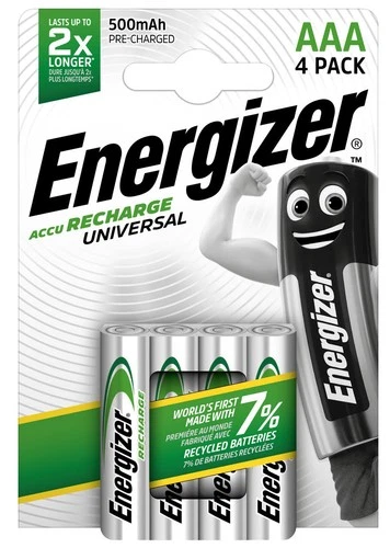Energizer AAA Recharge Universal 500mAh NiMH Pre-Charged Batteries - Pack of 4