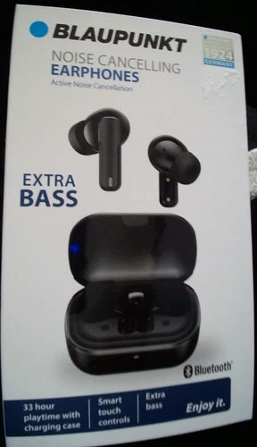 Blaupunkt Noise Cancelling Earphones. Black. Extra Bass. 33hr Play. Buit in Mic.